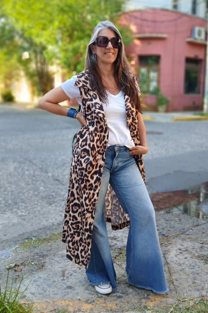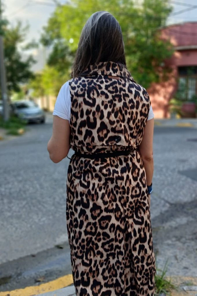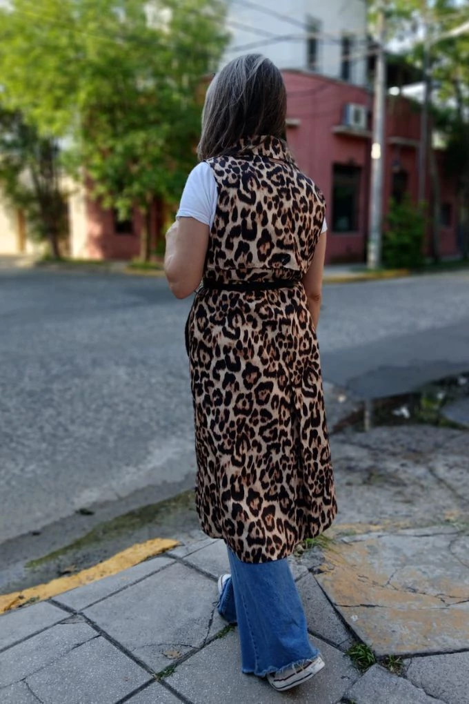 Descubrí el Chaleco largo con estampado animal pirnt, la prenda que suma un toque audaz y sofisticado a tu look. Confeccionado en satén para brindar comodidad y estilo, su diseño largo realza cualquier outfit con una onda única y moderna. Ideal para combinar con básicos y darle protagonismo a tu guardarropa.